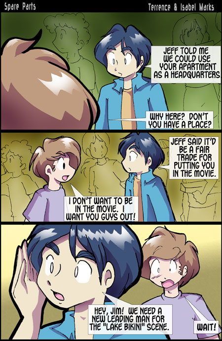 Spare Parts  is © Terrence Marks and Isabel Marks, 2003. Do not distribute any images on this site without the artist's permission or without giving credit to the comic's creators (including a link back to https://www.sparepartscomics.com/). Spare Parts has been on the web since October 2003 and updates every Monday, Wednesday  Friday at 12 AM Pacific time.