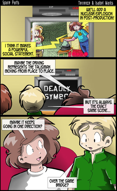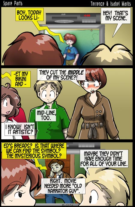 Boy, today's comic sure is existential. I'm sure that's what the director was going for. Anyhow, I was going to go on a long ramble about music, but it's not quite ready. Instead, Isabel and I watched four episodes of the Yakitate!! Japan anime. I like it even better than the manga. I owe fanmail to Anime-Empire for subbing it. And to Takashi Hashiguchi, the mangaka.