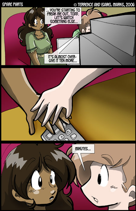 Since this was the largest number of You Say it First readers I had assembled to date, I asked if they thought they could tell when Isabel wrote the comic and when I wrote it. I had always wondered about that, how similar our writing styles really are. I think they're fairly different, but since we edit each others' work it probably gets blurry. They said they never thought about it, which means there probably aren't any great differences. One day I may publish a scorecard. The Lounge Guys give you +5 to "Written by Terrence". Or maybe not. I'm never sure about how much of the process to reveal.